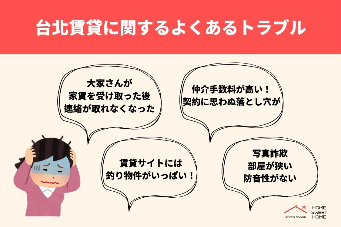 台北のお部屋探しで最も避けたいのは「連絡がつかない管理者・大家」問題です。お金を払った後は放置されて、何かトラブルが起きても自分で解決しなくてはいけない、なんてことも。